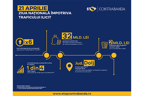 În anul 2022, pe fondul eforturilor extinse ale autorităților de a stopa activitățile ilegale de la granițele țării, peste 110 milioane de țigarete de contrabandă au fost capturate la frontierele României